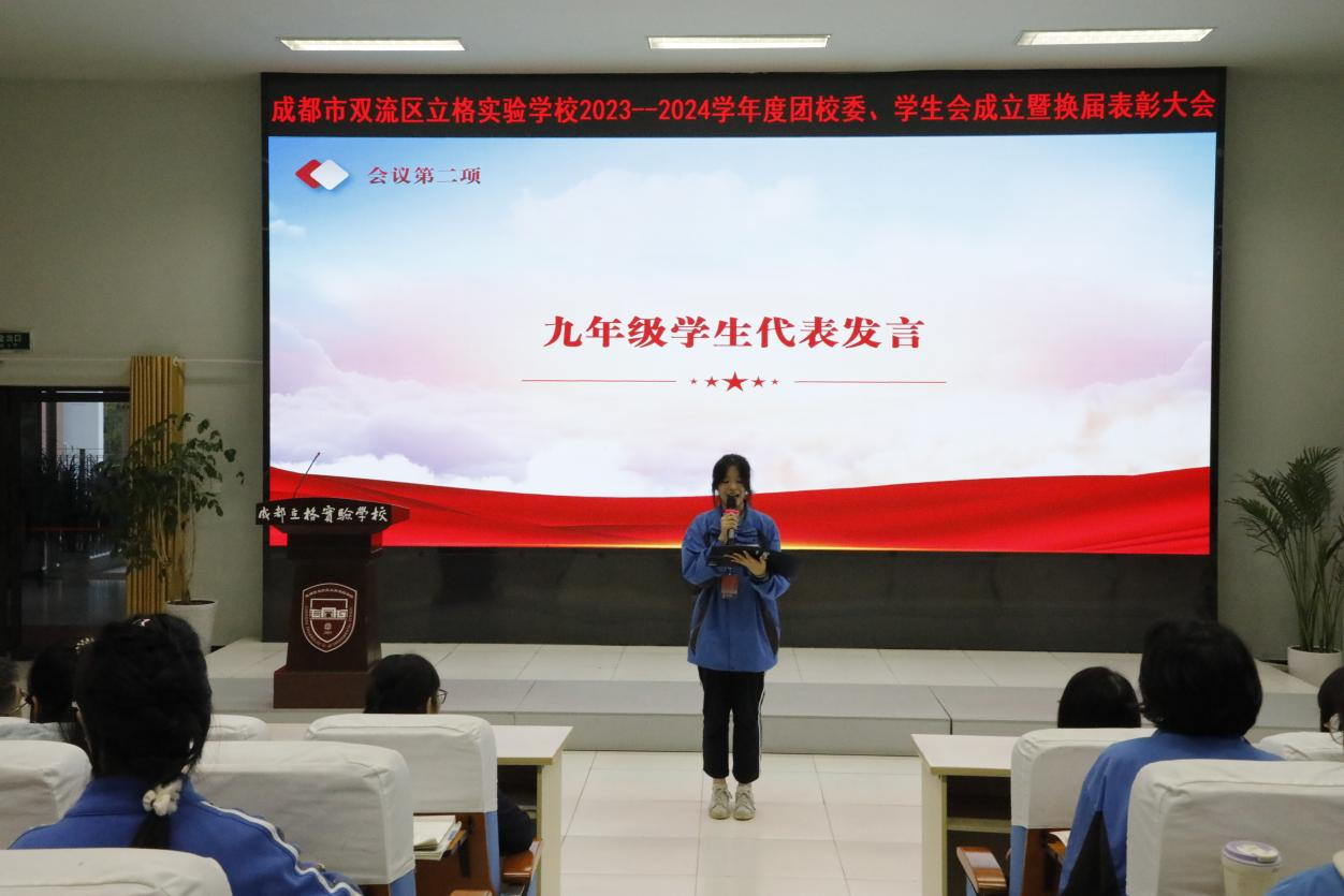 最后龙清明校长为学生会、团校委也带来了寄语。龙校长感谢了九年级干部们的辛苦付出,祝贺了八年级新一届干部们的成功竞选,同时欢迎七年级干事们的加入。希望新一届团校委、学生会继续创造精彩,做优秀立格人。
