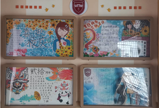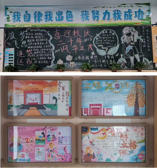 此次班级文化建设中,同学们自觉文明言行,精心布置教室环境,各班地面整洁、桌椅摆放整齐,共同营造了良好的学习成长环境和校庆氛围,在校庆口号展示中表达了对学校二十岁生日的祝福之情,以积极向上的精神风貌迎接学校建校二十周年校庆。