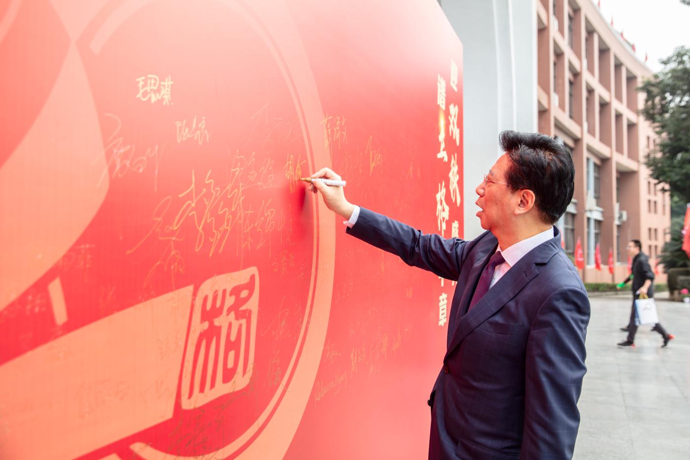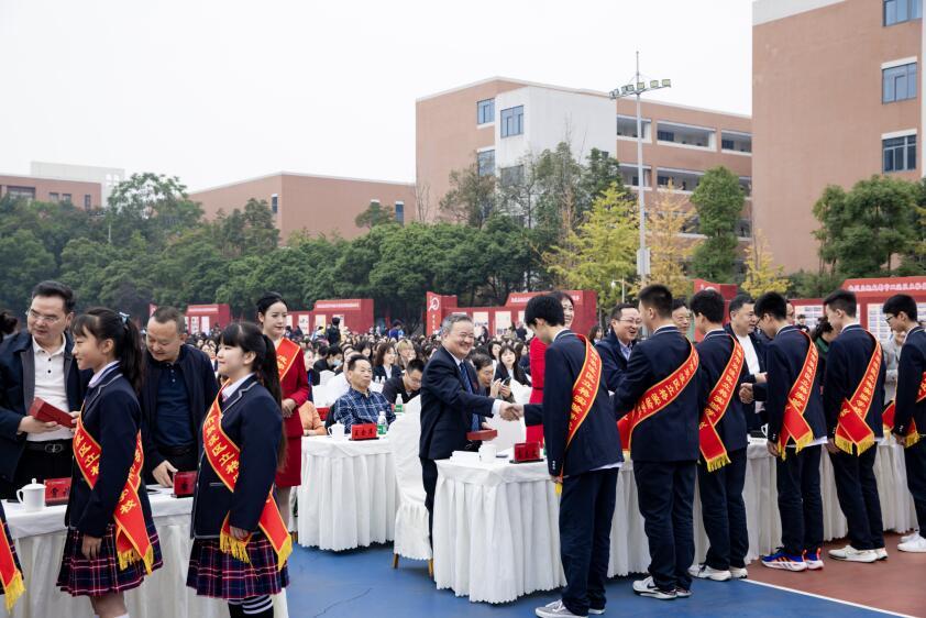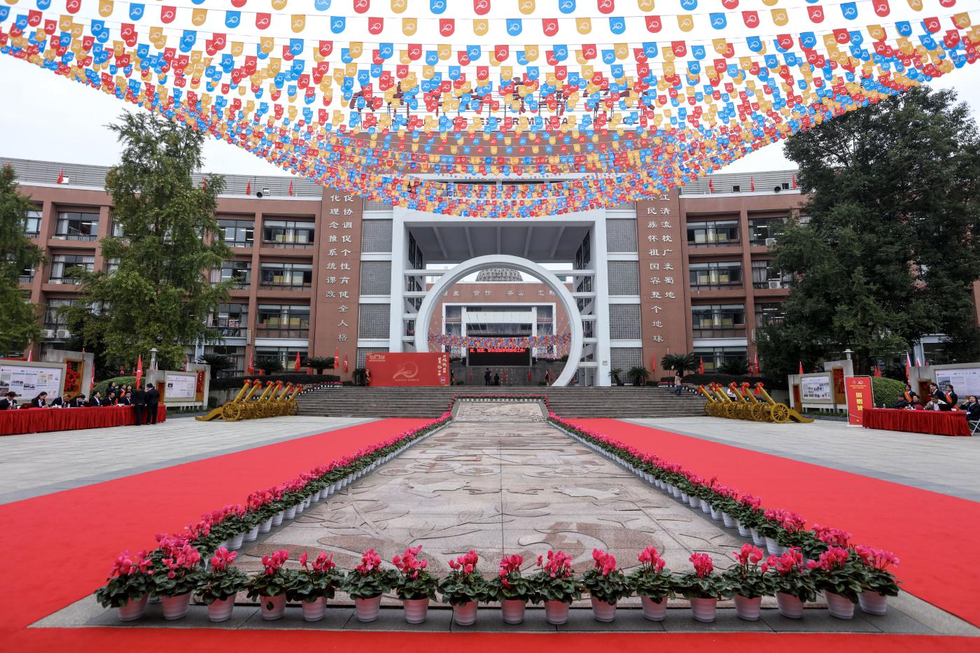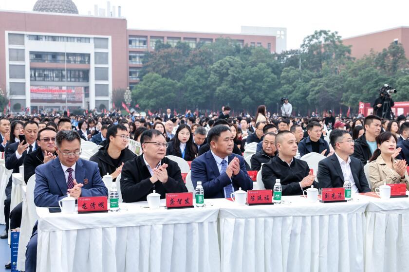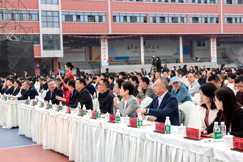 中国民办教育协会常务副会长胡卫,第十一届、十二届四川省政协副主席、现四川省陶行知研究会会长赵振铣,四川省教育厅副厅长崔昌宏,省教厅基教处处长何庆,四川省教育学会会长刘东,四川省教育学会副会长、省教育科学研究院副院长廖德斌等领导专家在主席台就座。四川大学、成都理工大学、成都四中、成都七中、成都九中等友好单位代表,海内外校友、家长代表、全校师生及社会各界有关人士参加庆祝典礼。