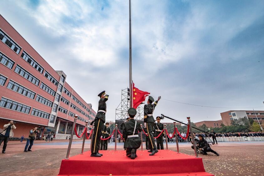 典礼在冉冉升起的五星红旗和雄壮的国歌声中拉开序幕。