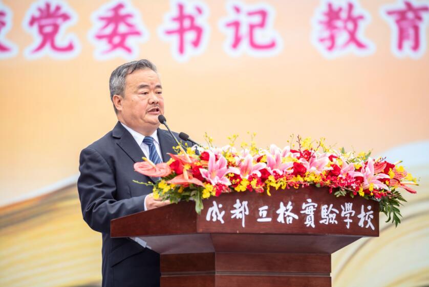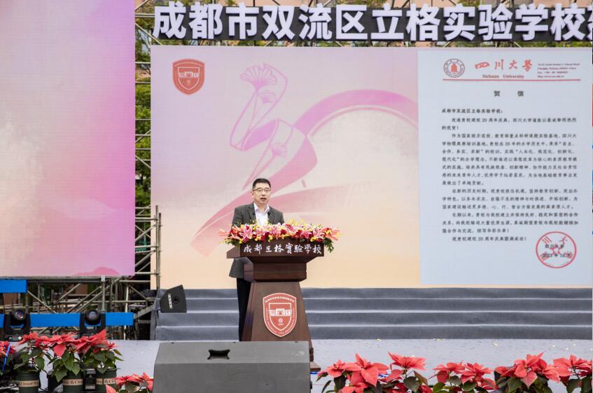 中共成都市双流区区委常委、宣传部部长许敬在典礼上讲话。他在讲话中说:立格实验校为老百姓提供了多元教育选择,是天府大地上一颗璀璨的教育新星。