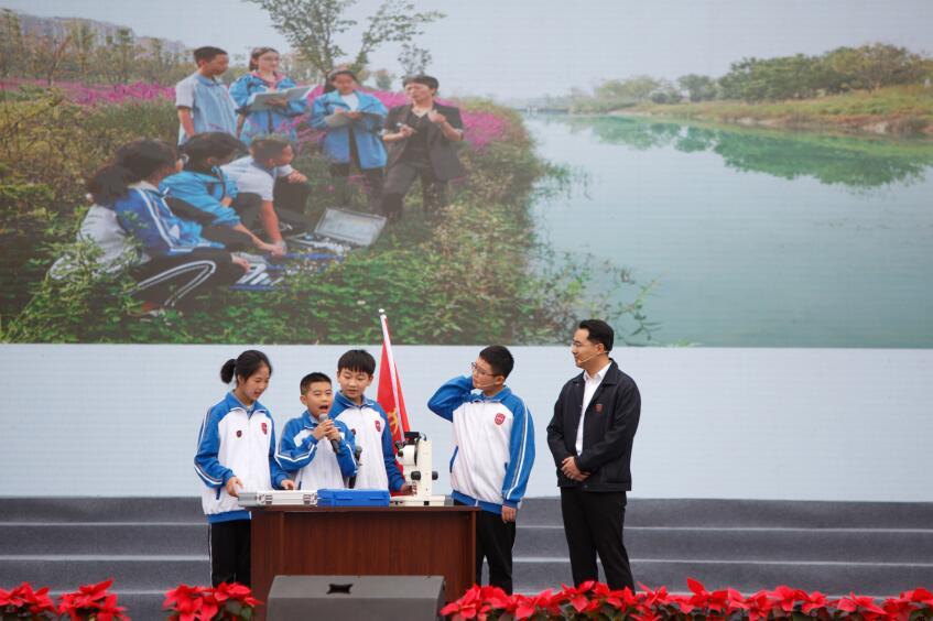 上午9:40,成都立格实验学校建校20周年庆典在学校运动场举行。