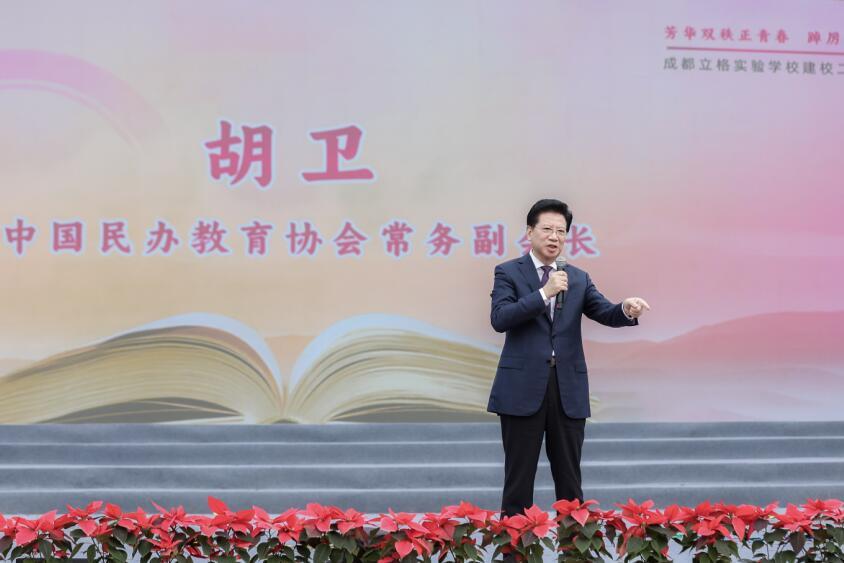 中国民办教育协会常务副会长胡卫先生在典礼上讲话。他在讲话中说:立格实验学校通过课程改革来推动素质教育的落地生根,使学校办学取得了成功,是中国民办教育的一个奇迹。