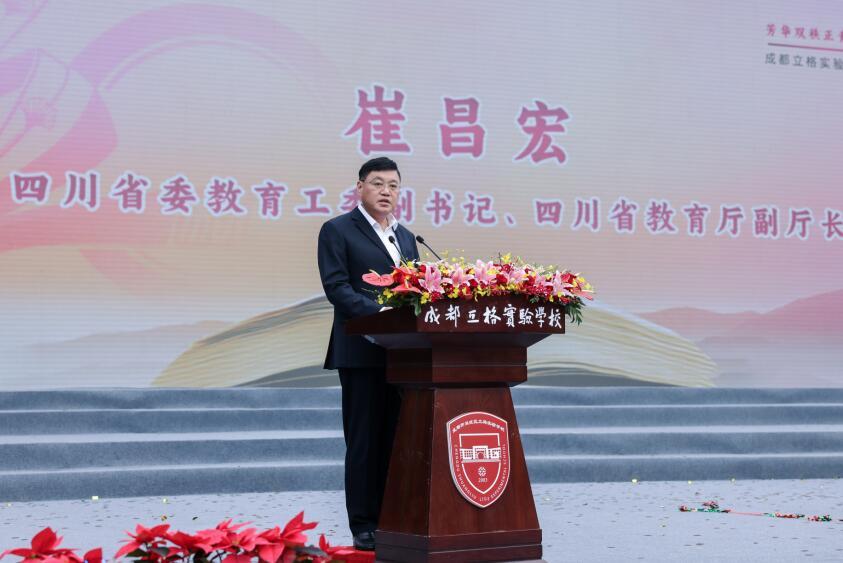 四川省教育厅副厅长崔昌宏在典礼上讲话。他在讲话中说:立格实验作为四川民办教育的排头兵,牢牢把握教育发展的脉博,全面推进素质教育,为四川教育提供了更多的办学实践经验和改革创新举措。