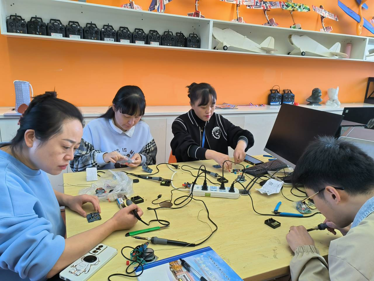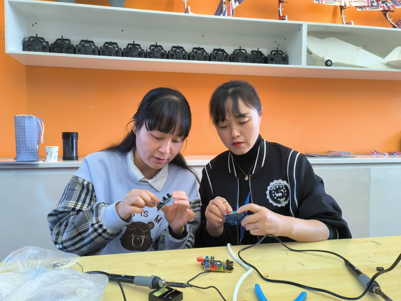 接着就是大家利用自己的研究时间,焊接其他剩余的零件部分,大家非常专心都非常想要赶快做出自己的蓝牙音箱。