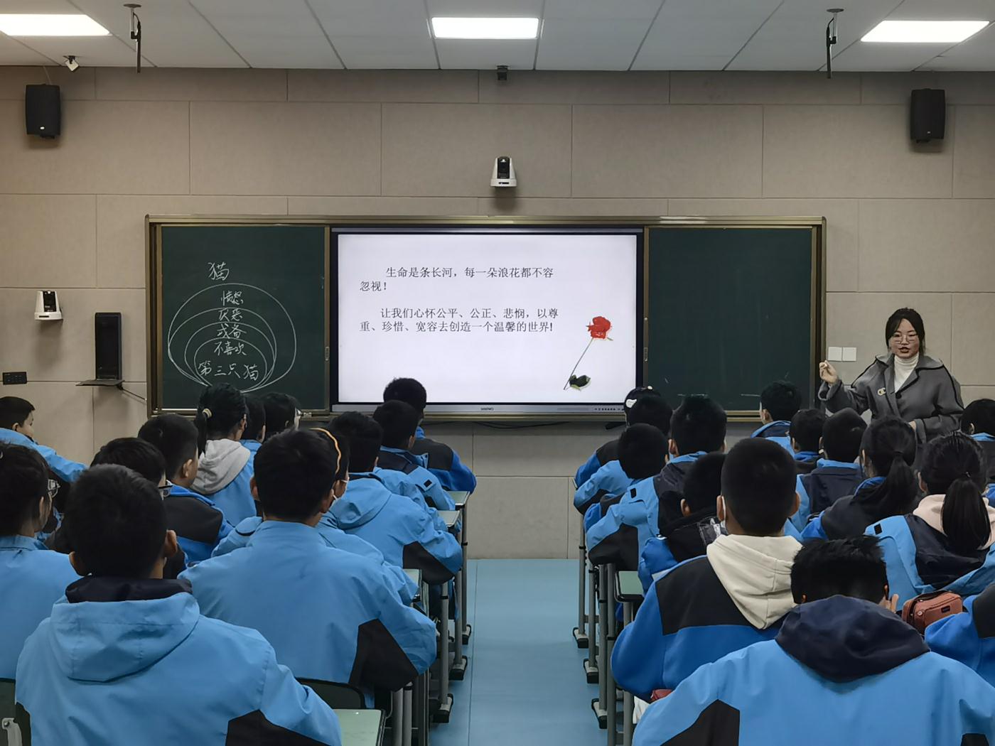 2023年11月23日星期四,七年级语文备课组王俊霖老师携七年级八班全体同学共同学习散文《猫》,力图在语言文字的浸润中学习新的知识,领悟新的道理。健全人格文科课题组研究教师和语文教研组全体教师到场聆听并指导。
