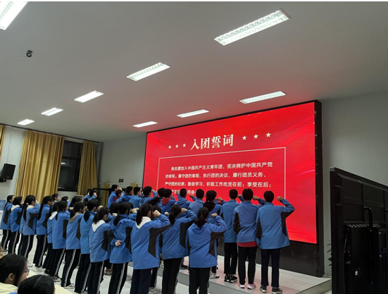 入团仪式在雄壮的团歌声中结束。入团仪式不仅是新团员加入团组织的标志,更是一份责任与使命的授予!此次入团仪式激发了全体团员的民族自豪感和爱国情操,让他们感受到了新时代赋予青年一代的责任。相信我校团员同学定会不忘入团初心,努力学习,积极进取,在将来担当起中华民族伟大复兴的时代责任。