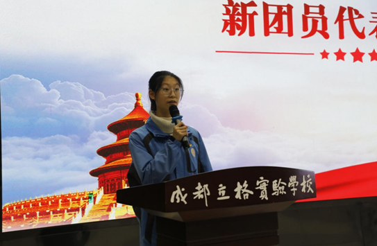 新团员代表曾爱同学讲述了同学们从小学加入少先队以来的成长之路,表达了加入团组织积极追求进步的愿望,代表全体新团员做出了为其他同学榜样的承诺。