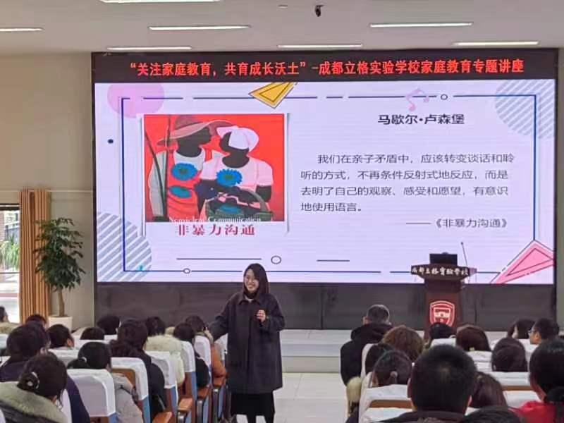 此次家长会邀请了双流区家庭教育讲师向婷婷做了主题为“关注家庭教育,共育成长沃土”的家庭教育讲座。 在讲座中,专家深入浅出地讲解了家庭教育及有效亲子沟通的重要性、技巧和方法,强调了尊重、倾听和表达在沟通中的关键作用。同时,专家还分享了如何通过日常互动、情感表达和共同活动等方式,为孩子提供积极的情绪价值,促进其心理健康和个性发展。