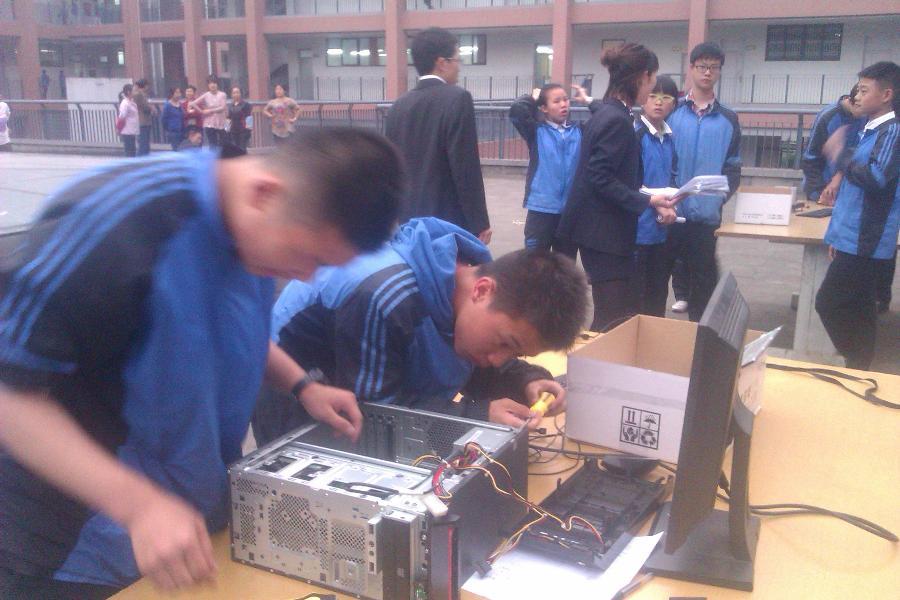 计算机组装比赛是我校科技节的一个板块,也是理论与实践相结合的一个活动。学生则需要对计算机的拆装做到统筹计划、自主分工,探索思考各个部件的拆装顺序以及安装要领和安装规范;各种线路连接的有序美观。
