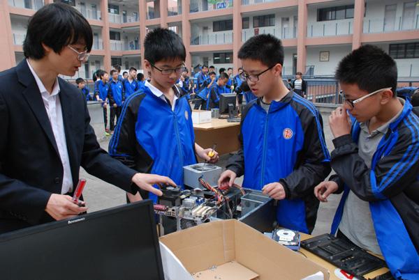 4月14日,我校第八届科技节“计算机组装比赛”在学校图书馆顶楼拉开帷幕。