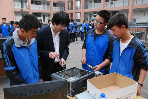 计算机组装比赛是我校科技节的一个板块,也是理论与实践相结合的一个活动。学生则需要对计算机的拆装做到统筹计划、自主分工,探索思考各个部件的拆装顺序以及安装要领和安装规范;各种线路连接的有序美观。