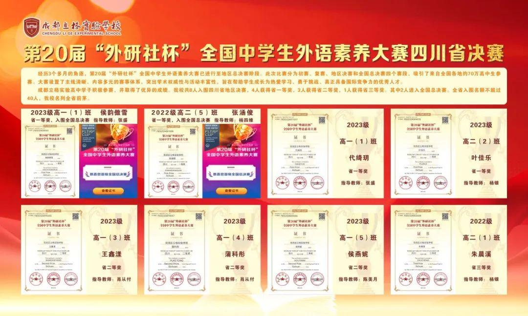 成都双流区立格实验学校高中学子积极参赛,并取得了优异的成绩。