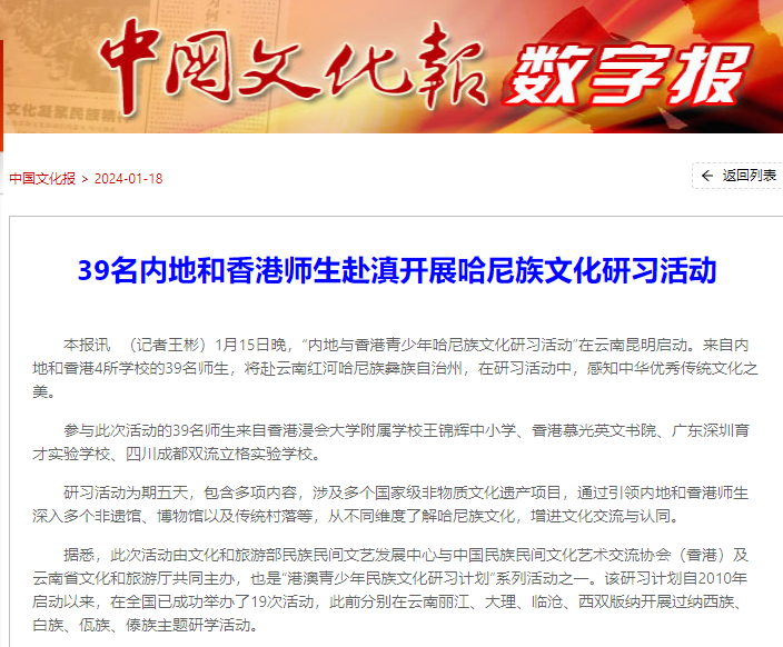 此次活动由文化和旅游部民族民间文艺发展中心,中国民族民间文化艺术交流协会(香港)和云南省文化和旅游厅共同主办。中国新闻网、文旅中国、中国文化报数字报、中工网、云南网等多家中央和地方知名媒体进行了跟踪报道。