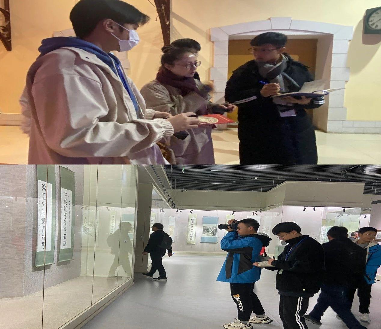 图为自然生态与建筑组负责记录文案编辑的香港暮光英文书院中四学生张元喆,陈璋钜和立格实验初二学生鲍芸浩同学在认真记录,负责摄影的立格实验初二学生汤明岳同学认真摄影
