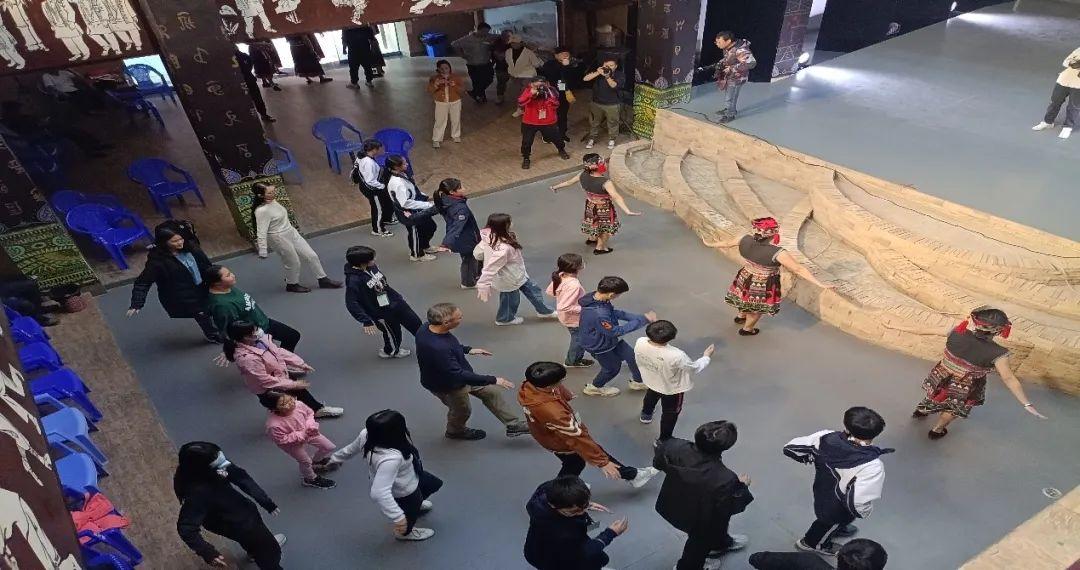 在元阳县非遗传习馆,同学们欣赏哈尼族传统歌舞,并且亲身体验了哈尼乐作舞,再次体会到了哈尼族文化的独特魅力。