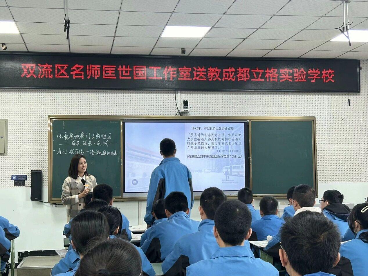 近日,双流区匡世国名师工作室送教至成都立格实验学校,本次活动以“‘学为中心’课堂探究”为主题,针对八年级新课教学进行研讨。立格实验学校晋云萍老师就《香港和澳门回归祖国》一课围绕“学为中心”进行了课例展示。工作室张梦茜和导师匡世国就“学为中心”的课堂观察和如何进行新授课教学开展专题讲座。