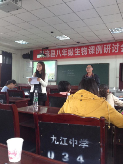 2015年4月21日,我校生物组曾思敏老师在九江初中举行的双流县生物教研会献上了一堂精彩的复习课。曾思敏老师根据我校生物组课堂教学复习课模式,结合学情,针对中考重点,对《生态系统》进行了专题复习。曾老师教学设计新颖,教学重难点突出,并且结合历年中考试题,进行了深入分析,对本专题的基本知识进行了归纳和提炼,对学生在解题过程的易混点和易错点进行了分析,整个教学实用有效,曾老师亲切的教态,扎实的基本功,得到了与会老师和领导的高度评价。(生物组 雷智)