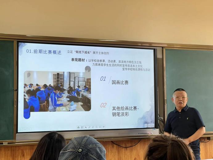 4月26日上午9:10,吴永建名师工作室小、初、高全体成员,于初中部美术教室开展了工作室研讨活动。本次工作室活动的主题是对小学和初中部在2023—2024学年度组织参加“双流区第十四届中小学生艺术节”中国画专题创作及其他画种创作两个阶段比赛的中小学美术项目比赛进行成绩分析和总结。