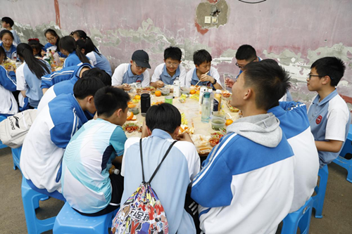 种植完成已经接近下午6点了,劳动结束就可以美美的吃晚餐了,劳动后的晚餐自然比平时的饭菜吃起来更香啦。今天的“坝坝宴”氛围直接拉满,有同学们爱吃的鸡腿、烂肉豌豆、麻婆豆腐、炒西胡瓜和美味的紫菜汤,饭后还有水果。师生坐了约100桌,同学们第一次感受到了“坝坝宴”魅力。