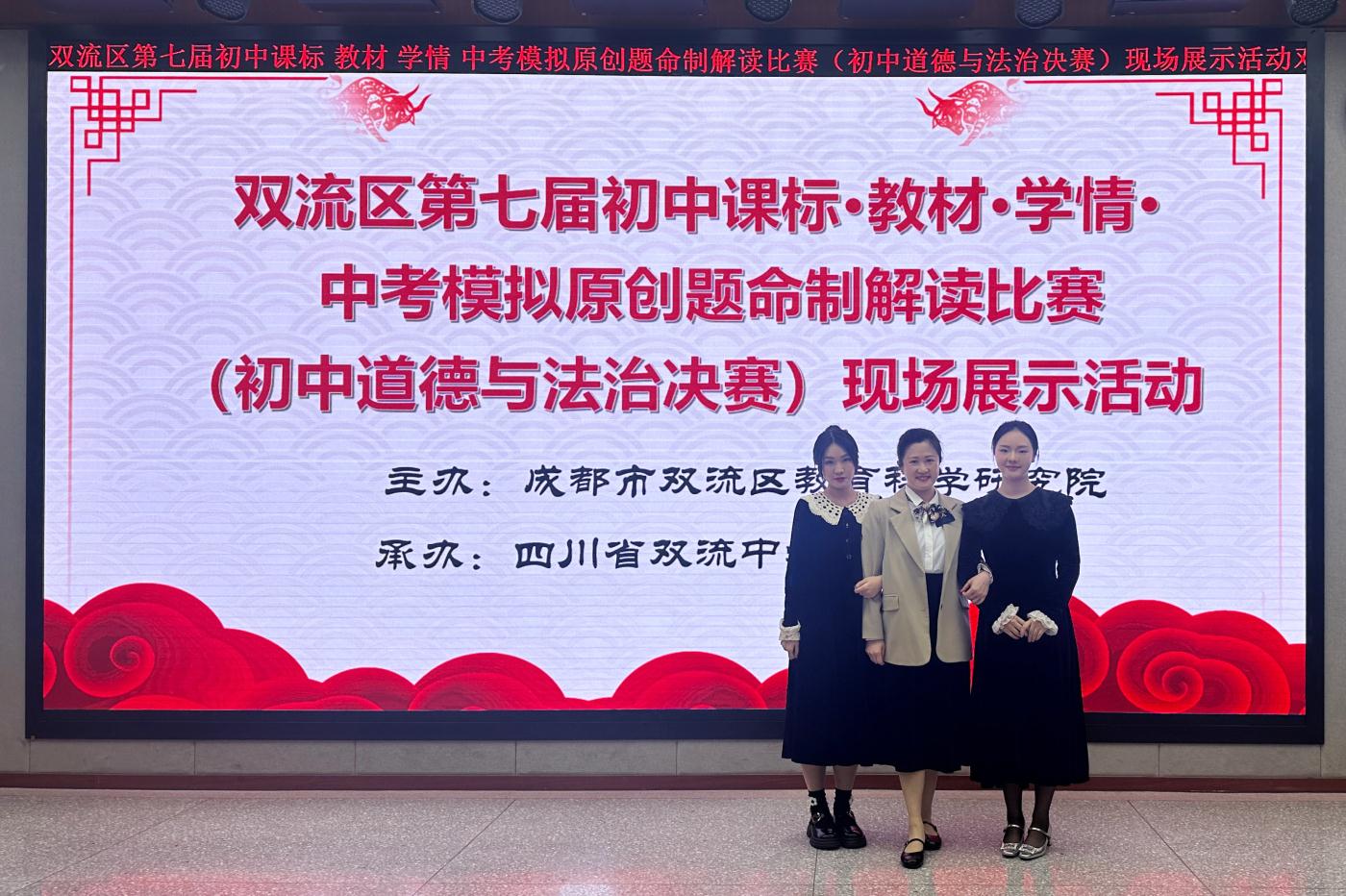道德与法制组:秉持着“无素养不入题,无情境不命题”的原则,老师们此次命题围绕《富强与创新》选题,明确“探寻成都市双流区的幸福密码“主题,着眼“政治认同”“责任意识”素养培养,选择“幸福双流”情境材料,紧扣时政热点——新质生产力,开展《解密双流幸福密码》项目式前置任务,引导培养探索性、创新性思维品质,增强试题的应用性、探究性、开放性,获得评委一致好评。