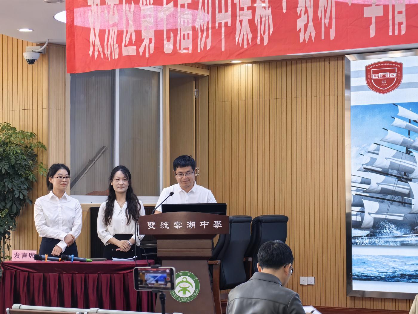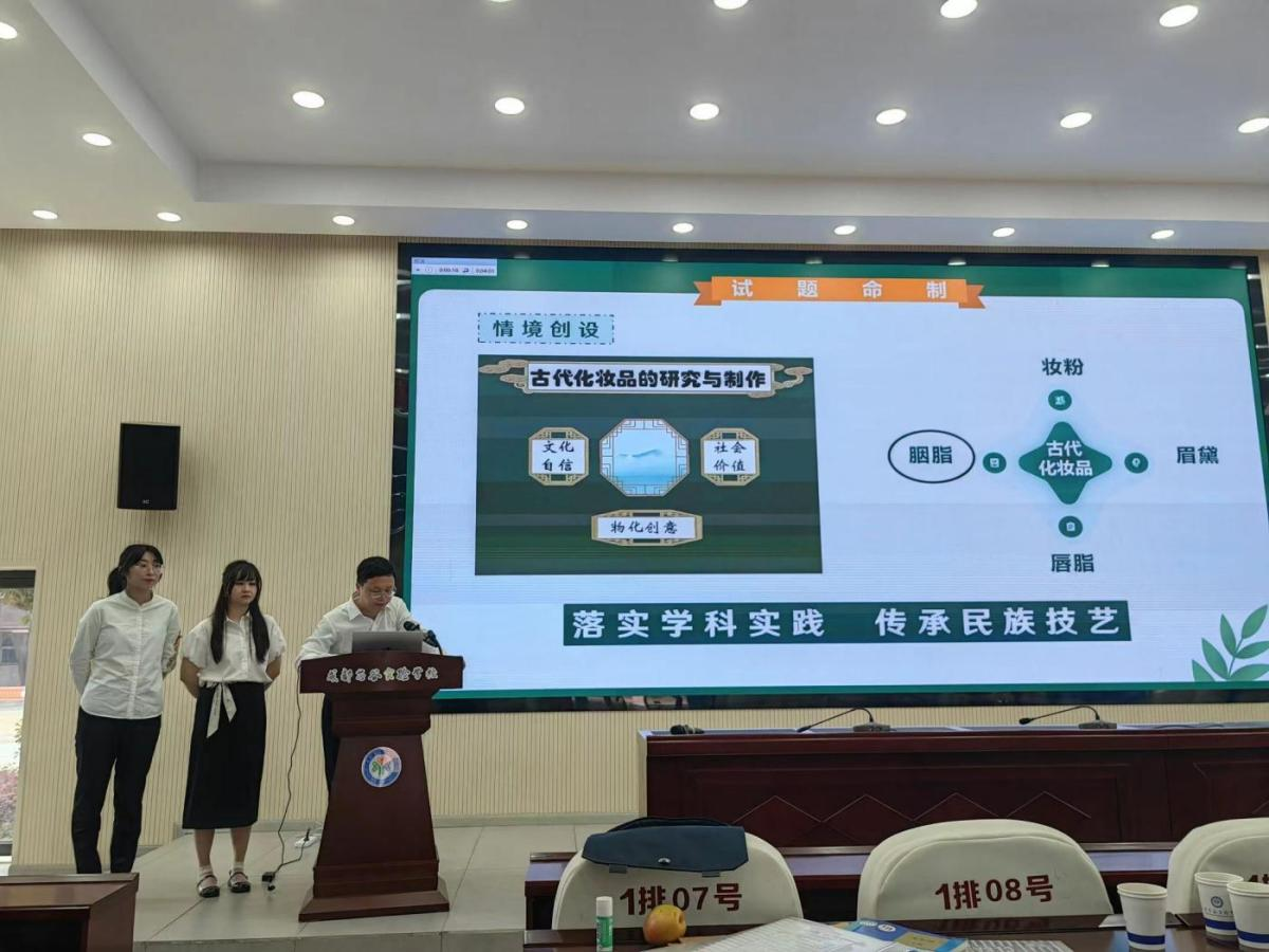 化学组:曹老师对近五年成都中考第17题的考察要点进行了多维度分析;李雄老师对我校原创题的命题背景——古代化妆品的研究与制作课题进行了介绍;龚老师就本组在命题过程中出现的问题,通过本次命题比赛获得的对教学的指导做出了总结。经过展示与评选,最终我校化学组荣获本次比赛一等奖。