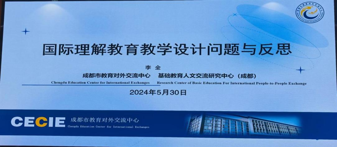 接着,陈幸老师分享了上周在双流艺体中心举行的“成都市双流区2024年春季国际理解教育学科研培活动”的要点。四川省双流艺体中学的王玥琪老师和成都棠湖外国语学校的胡小兰老师分别展示了思政学科渗透课和国际理解教育专项课的课例,展示了学科融合在国际理解教育实践中的运用。成都市教育科学研究院的雷沛瑶博士在“国际理解教育课堂设计与教学实施”专题讲座中,特别强调了成都市中小学国际理解教育优质课的评选标准,包括教学目标的清晰性、可操作性和可评价性,以及教学内容与学校育人目标的一致性。教学过程应基于学生的真实生活情境,促进师生间的平等对话和反思交流,培养学生对不同文化的理解、包容和共情能力,以及应对全球议题的能力。同时,教师应具备创新精神,鼓励学生提出创新性的问题解决方案或创造新产品。成都市对外交流中心的李全书记对本年度的国际理解典型教学设计案例进行了深入解析,并为教师的教学设计提供了宝贵建议。