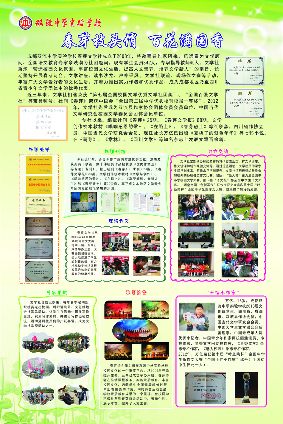 春芽枝头俏,百花满园香 ——四川成都星空在线登录官网春芽文学社简介