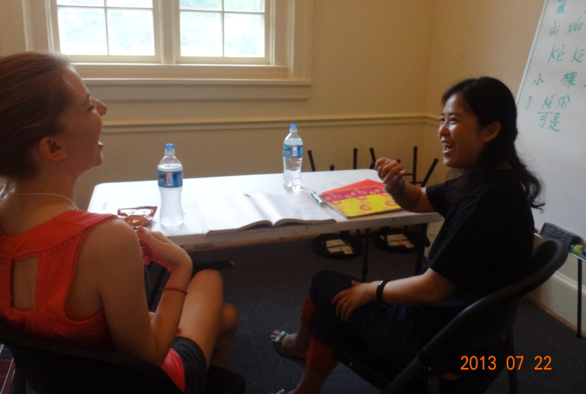 二.加强对外教学交流,树双中教师良好形象。我们在精心管理我校学生学习生活的同时,受美方邀请,主动承担了美国两校学生的中文教学任务。在Camelot Academy 学校,培训对象是10-18岁的学生,培训时间是周一至周五。在这批学生中仅有一名18岁的学生学过6年中文,其余均未接触过中文,针对此情况我们对这名学生制定了专门的教学计划。在CFS学校,我们对该校两期5-8岁的学生进行了中文培训,我们每天从早上学生9:30到校到下午3点学生离校之前都和美国小学生呆在一起。在教学中,我们分成了两组:1、石红薇、欧英、赵敏;2、周燕、曾燕。第一周由1组的三个老师在Camelot 上课;第2组的两个老师在CFS学校上课。第二周两个组进行交换。在Camelot 学校是两个老师轮流上课,针对那个18岁的学生由一位老师给她单独上课;在CFS学校是几个老师同时上课,原因是CFS学校学生年龄太小,我们把10个学生分成了2组或3组同时进行教学。特别是CFS的课,孩子太小,听课很吃力,一节1个小时的课时间太长,孩子坐不住,老师们想了很多办法,包括去美国小学老师家里请教小学教学方法,采用了多种教学方式,一节课边唱边跳,每天放学后每个老师都非常疲倦。功夫不负有心人,通过我们的辛苦努力,我们所教的美国小学生在夏令营结束的汇报表演中获得了成功,得到了家长和校领导以及北卡营地负责人的肯定和赞赏,为我校争得了荣誉。