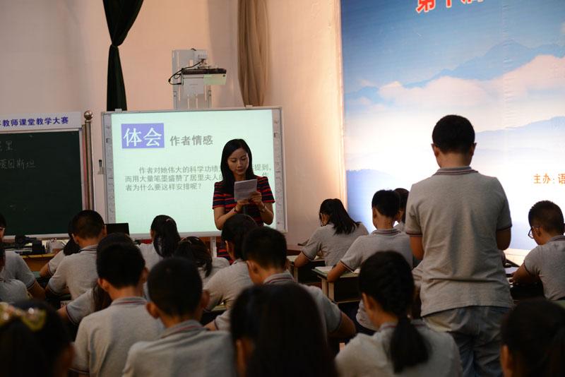 最后一位赛课选手张蓉老师执教的是《悼念玛丽·居里》,张老师以亲切动听的语言带领学生去挖掘文本内容、品析文本情感,并不时穿插视频和小故事,丰富学生的认知范围、增强学生的理解能力。
