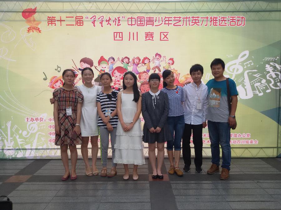 2015年7月星星火炬四川赛区总决赛在四川音乐学院举行。我校“太阳门之声”小组8名成员在夏栋梁、吴玲、陈衫杉三位老师的带领下参加此次比赛,经过激烈的角逐,队员们取得了可喜的成绩,其中特等奖1人,二等奖4人,三等奖3人,星空在线登录官网被大赛组委会授予优秀组织单位。