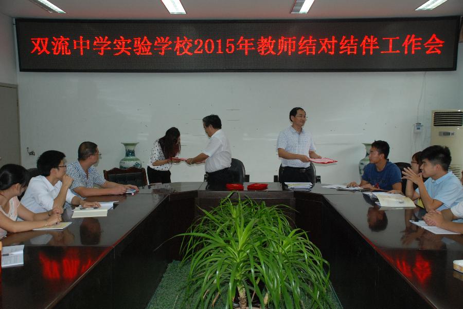 在“人本化、规范化、创新化、现代化”办学理念指导下,为促进青年教师教育教学及教育科研能力的提高,充分发挥骨干教师的传、帮、带作用,我校于9月7日下午举行了2015年师徒结对结伴仪式。