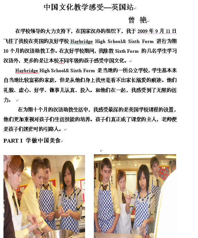 教师出国交流之曾艳老师在英国友好学校海布里奇中学