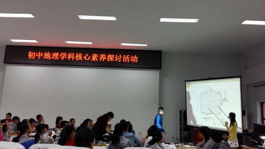 上午,双流县初中地理组教研活动在我校召开。我校钟英老师就《初中地理学科核心素养》进行了报告,而后全体教师参与探讨活动;我校丁翔老师执教了《地图的阅读》一课,各校代表教师就本课如何培养学生初中地理学习方法,如何体现初中地理学科核心素养就行了交流。本次课例研讨活动在双流县地理教研组刘冕主任的总结后结束。(地理组 丁翔)
