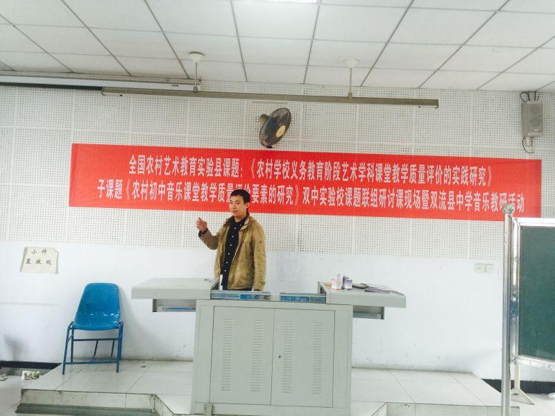 11月5日(星期四)上午,由我校艺术组牵头的“全国农村艺术教育实验县课题”《农村学校义务教育 阶段艺术学科课堂教学质量评价的实践研究》子课题《农村初中音乐课堂教学质量评价要素的实践研究》本学期第二次课题联组研讨活动 在我校开展。张润林副校长、文传福主任、我校音乐备课组全体教师以及双流县其他初中音乐教师出席了此次活动。