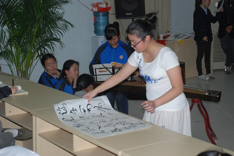 八名选手共同参演的《大中国》作为本次决赛开场舞活跃了全场气氛,一号选手郭思怡为大家带来了新疆语言、服饰、文字、特产更是将现场气氛推向一个小高潮。八组选手在才艺展示中纷纷拿出自己的绝活,有民族舞、现代舞,书法,歌曲串烧等。让人印象深刻的要属八年级一班的单羽佳同学带领我们走了一趟大理,吃遍大理美食,看遍大理美景,在才艺展示中更是发挥所长,带领班上拉拉队同学一起大合唱,音乐动听,舞姿优美,赢得在场老师和同学的阵阵掌声和喝彩。