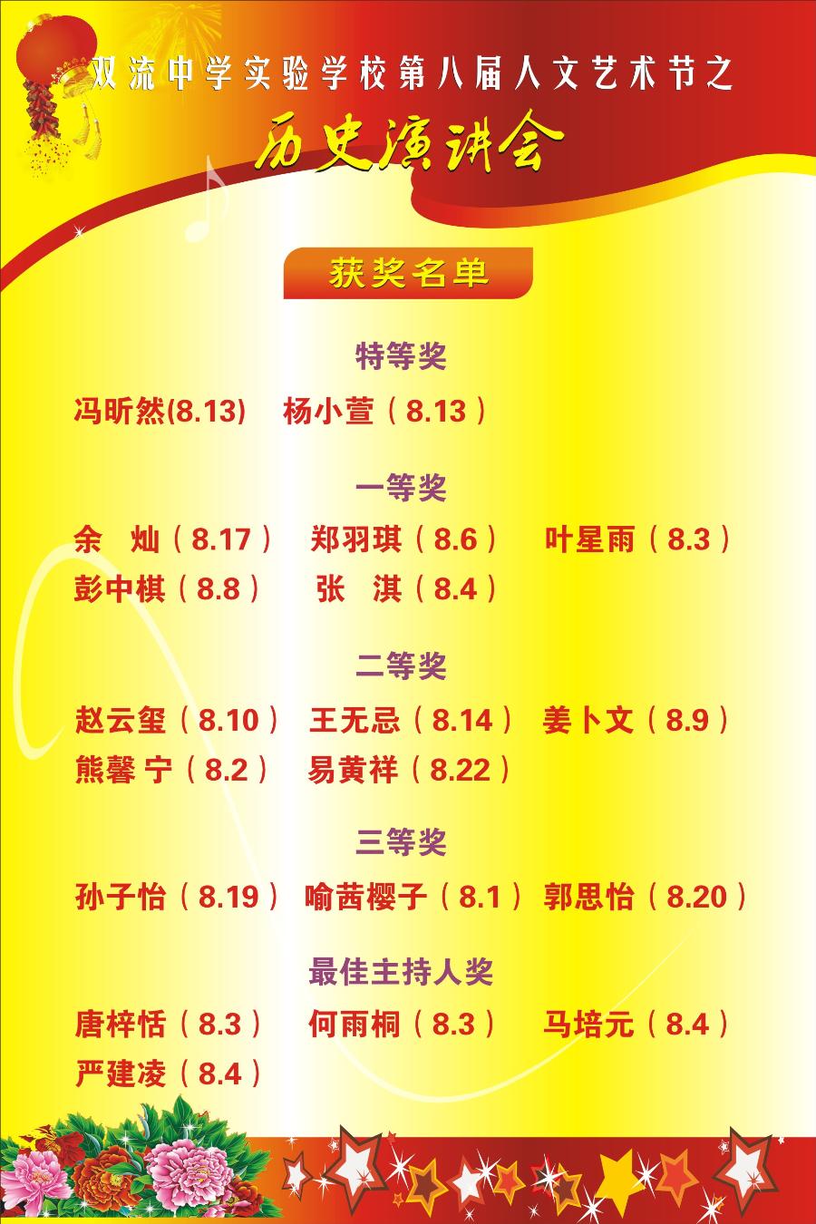 “祖国在我心中,爱国从我做起”第八届人文艺术节演讲比赛获奖名单