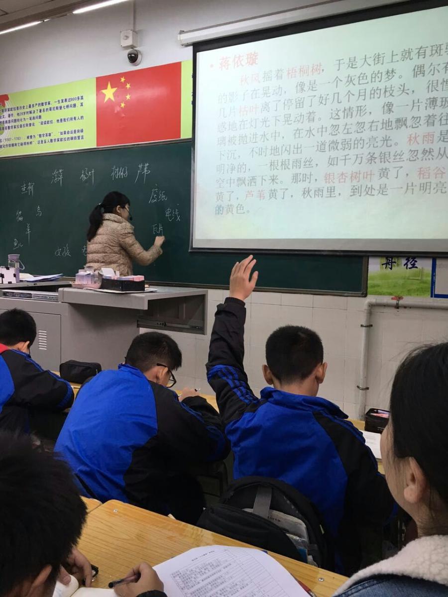 2015年11月26日第4节课,语文教研组开展了“人人献课”活动。七年级备课组张思思老师献出了一堂别出心裁的《风雨》。张润林副校长及全校语文老师到班听课。