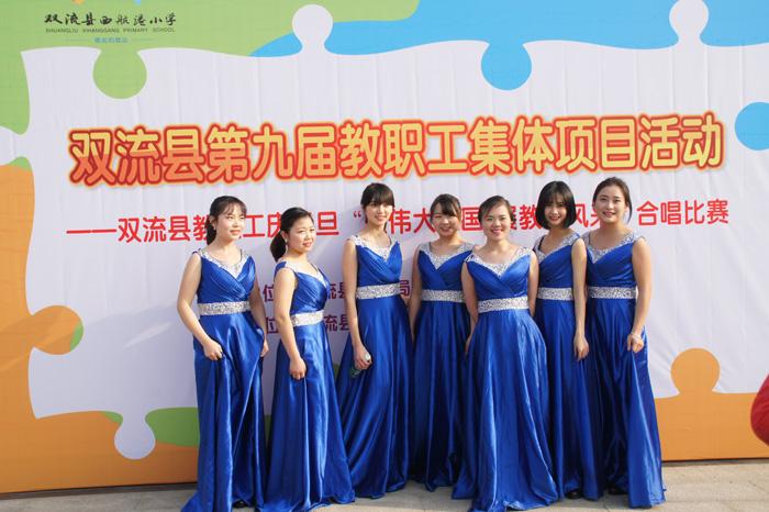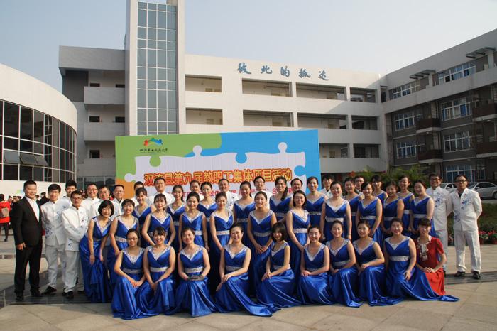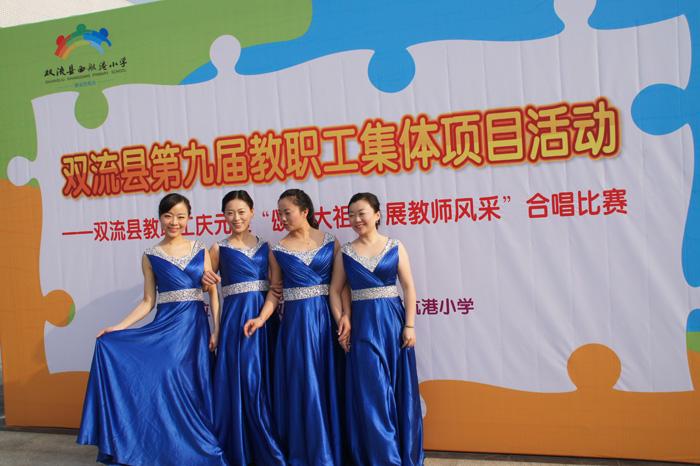 双流县教职工集体项目合唱比赛于2015年12月26日上午9:30在双流县西航港小学举行。我校教师合唱队通过仅一个月的时间训练,老师们克服了时间短、任务重、要求高等困难,牺牲了自己的休息时间周末时间认真训练,凭借超群的合唱技巧和雄厚的整体实力最终不负众望获得全县初中组特等奖,我校教师合唱队的精彩表现得到了现场评委和专家的充分肯定和高度评价,又为我校争得了荣誉。
