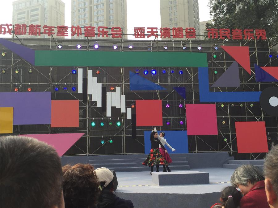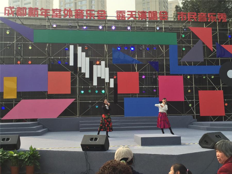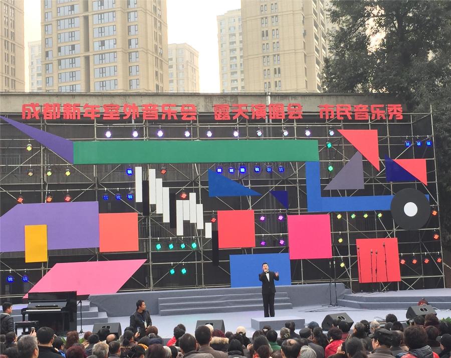1月2日元旦佳节期间,由成都市文化广播新闻出版局、成都传媒集团、四川省音乐学院主办,成都市文化馆承办的“成都新年室外音乐会”在东郊记忆成都舞台隆重开演,夏栋梁、吴玲、陈衫杉三位老师受邀参加此次活动,为成都市民听友献唱经典歌曲《春天的芭蕾》、《欢聚一堂》,再次体现了我校音乐教师较高的专业功底和社会认可度。