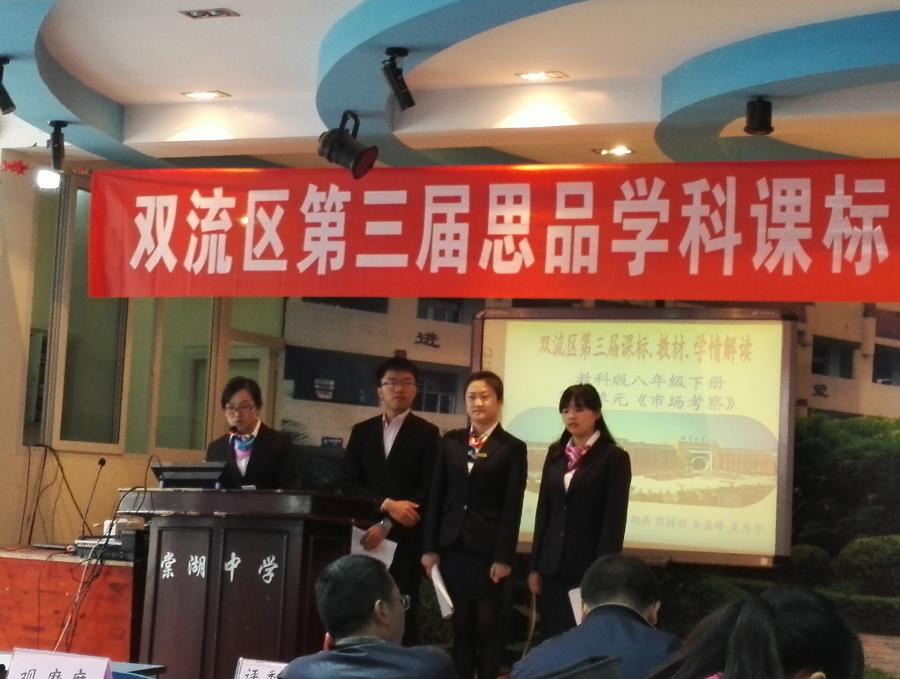 4月12日(星期二)上午,我校思品组八年级教师参加了在棠湖中学举行的双流区第三届思品学科课标.教材.学情解读大赛,本次解读的内容是教科版思想品德八年级下册第五单元《市场考察》。