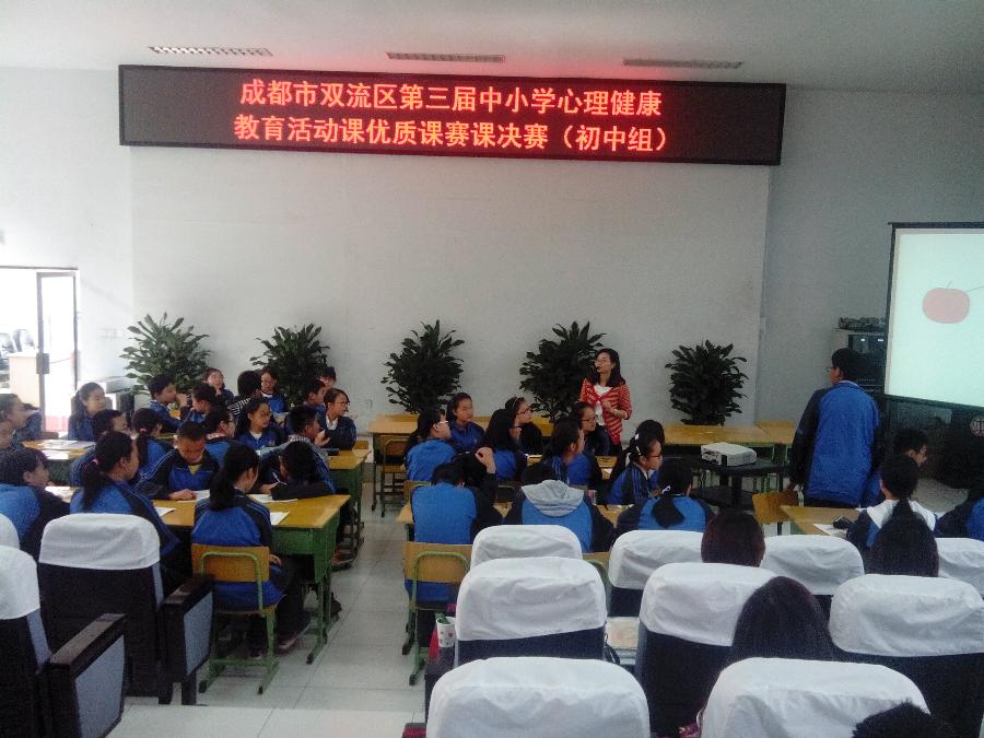 4月20日上午成都市双流区第三届中小学心理健康教育活动优质课赛课决赛在我校举行,全区共三位老师展开最后的角逐,我校袁程玲老师参与决赛。全区心理教师、我校思品组全体老师以及张校长、王主任等学校行政领到场听课。