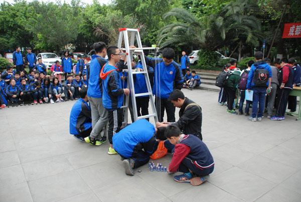 2016年4月19日,星空在线登录官网第九届校园科技节——重物提升比赛在校园英语角如期举行,我校8年级学生有23支队伍参加比赛,我县部分小学有部分家长和学生代表到现场观摩和参加了比赛。