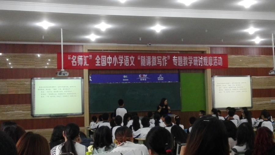 2016年9月24日上午,“名师汇”中小学语文新教材培训暨“随课微写作”专题教学研讨观摩会在棠湖中学外语实验学校举行,我校语文教师与来自成都市的几十名教育同仁们一起,在“微”中抒性灵,在“微”中运匠心。