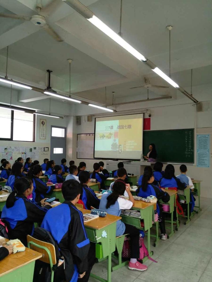 本次交流活动首先从观摩课堂教学开始。历史教研组组长何玲老师经过精心准备,为两校教师带来《战国七雄》一课。本课设计众多历史人物,包含生僻的历史概念,对七年级学生来讲有一定难度。何老师根据七年级学生人格心理特征,将知识学习形象化和游戏化,设计了形式多样的活动,如给历史人物设计名片,依次朗读历史资料等充分调动学生的积极性,使学生的学习充满乐趣。通过引用顾炎武的《日知录》、考古图片等印证战国时期战争的残酷性,为学生学习提供丰富的历史信息。整节课教学思路清晰,知识体系完整。教学节奏张弛有度,详略得当,展示了良好的教学功底。