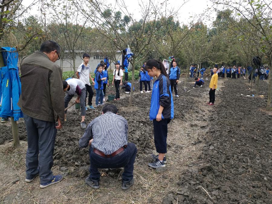 18日中午13:20参加此次基地种植活动班级的所有学生、班主任以及指导教师在太阳门口准时集合,并于13:30准时出发前往彭镇种植基地。出发之前,彭镇种植基地负责人李英华老师对班主任和指导老师进行了种植步骤的培训,并着重强调了种植过程的安全问题。