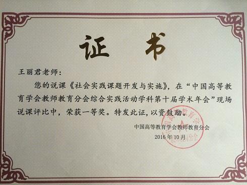 我组王丽君老师参加了在北京举行的本次年会,在会上,她就《社会实践课题开发与实施》中的职业体验课题进行了说课,分别从开展课题的必要性、课题开展的具体实施和案例展示三方面进行了详细的介绍。最终以优异的成绩获得一等奖,在场的与会老师都表现出对此课题极大的兴趣,并对我校真实、务实地进行课题开发大为赞赏。