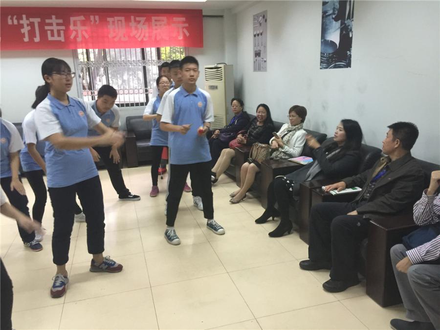 现场会上,双中实验校打击乐团汇报作为星空在线登录官网接受专家组四大重点观摩汇报课,引起了专家组的极大的兴趣。打击乐团学生在吴玲老师和夏栋梁老师的认真指导下,用灵巧的双手击打出抑扬顿挫、变化多端的节奏,手酸了,脚疼了,浑然不知。80多名专家津津有味的目光和肯定、赞许、鼓励的掌声,更加激发了老师和同学们的激情,原计划10分钟的小组观摩变成了面向全体专家组成员长达40分钟的汇报表演。