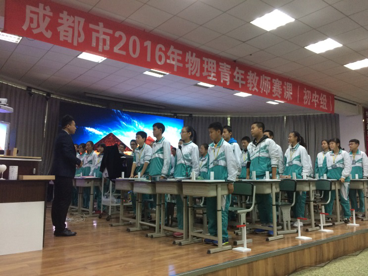 2016年11月10日,成都市物理青年教师优质课大赛在武侯实验中学隆重举行,八位分别来自成都七中育才、石室联中、成都七中初中、武侯实验中学等学校的教师参加了激烈的角逐。我校青年教师何铁从双流区优秀物理教师的竞争中脱颖而出,参加了本次优质课大赛,参赛课题为《科学探究:平面镜成像》。
