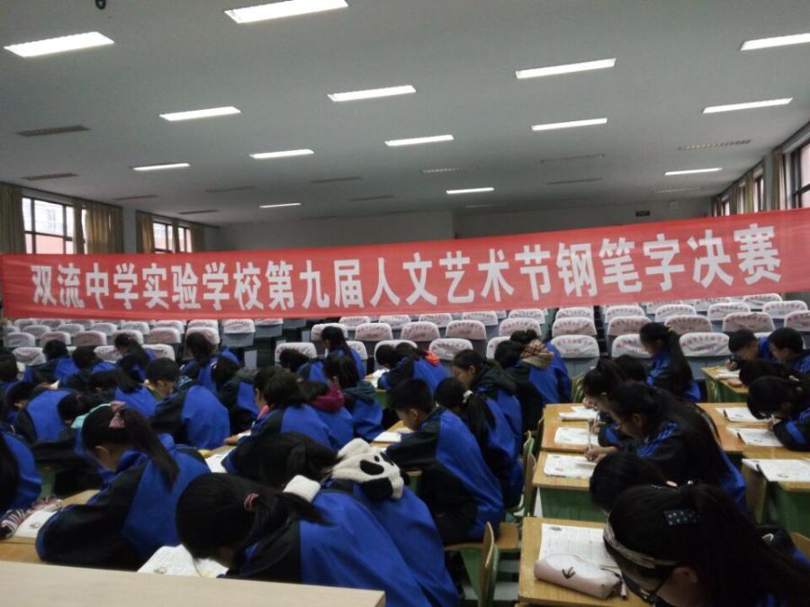 11月9日下午,我校第九届人文艺术节硬笔书法决赛在演讲厅拉开帷幕。来自七年级各班的60多位同学在一节课的时间内完成指定篇目的书写。比赛正式开始前,王雯雯老师宣布了比赛要求。各位同学在赛场上静心书写,只听得到笔尖摩擦纸张的沙沙声。语文组各位老师到场观赛。比赛评委老师为王雯雯、罗金莉和李欣。